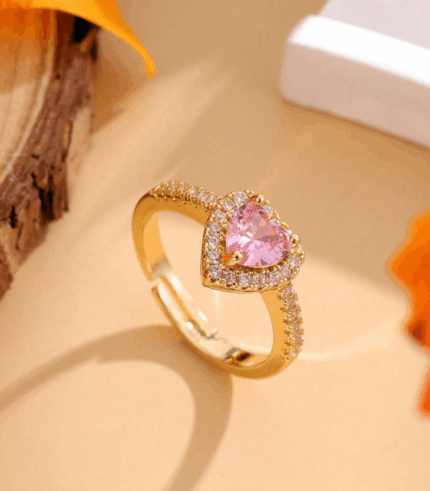 Ayarlanabilir Pembe Kalpli Yüzük Altın Kaplama