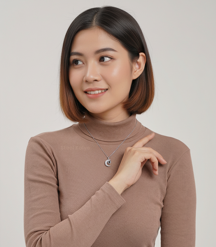 Hilal projeksiyonlu kolye, her kadının sahip olmayı hayal ettiği sıra dışı, zarif ve şık bir mücevherdir. Sofistike ve modern görünümünün yanı sıra, bu kolyenin asıl sürprizi de, ortasına yerleştirilmiş bir taşla yansıtılan, dünyanın 100 dilinde seni seviyorum yazıyor olmasıdır.