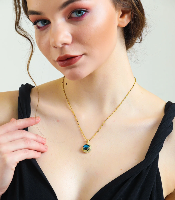 Gökyüzü kolye huzur, özgürlük ve sonsuzluğu temsil eden bir kolyedir. Altın rengi parlak zinciri ve gökyüzü taşı ile cazibenize ışıltı katacak.