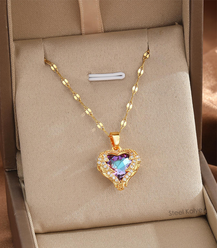 Okyanus kalbi kolye ölümsüz aşkı ve saf sevgiyi temsil eden bir kolyedir. Aynalı parlak zinciri ve melek kanatlı motiflerin arasındaki okyanus taşı cazibenize ışık katacak.