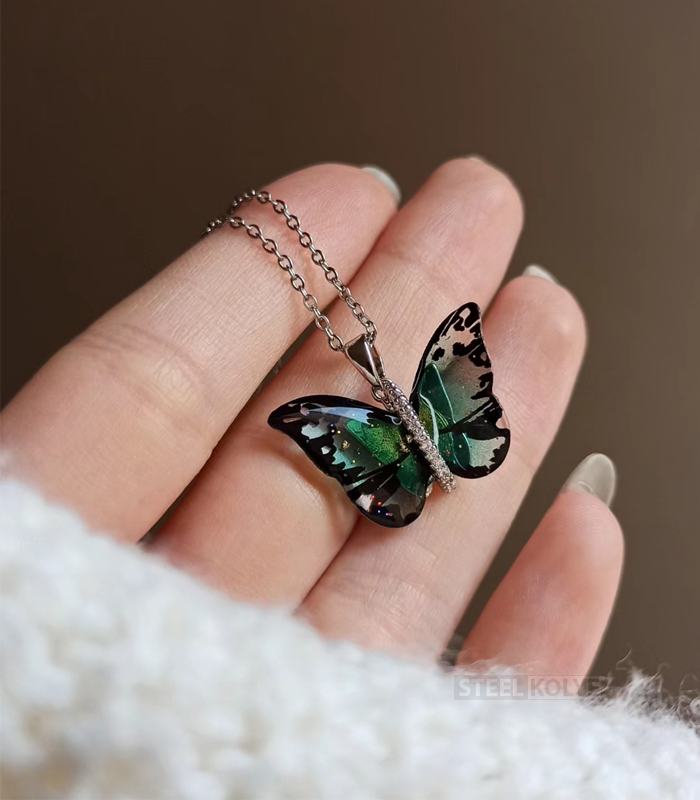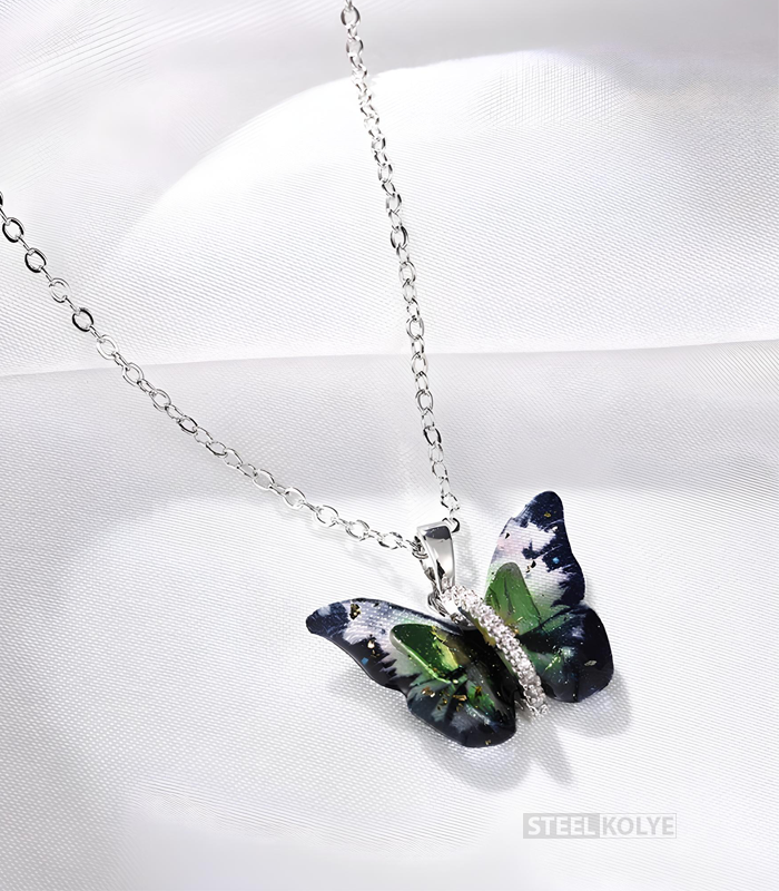 Renkli kelebek kolye birinci sınıf işçilik kullanılarak ve en kaliteli 316l çelik malzemeden üretilmiştir. Kararmaz ve paslanmaz yapısı ile uzun yıllar takabileceğiniz bir aksesuar olacaktır.